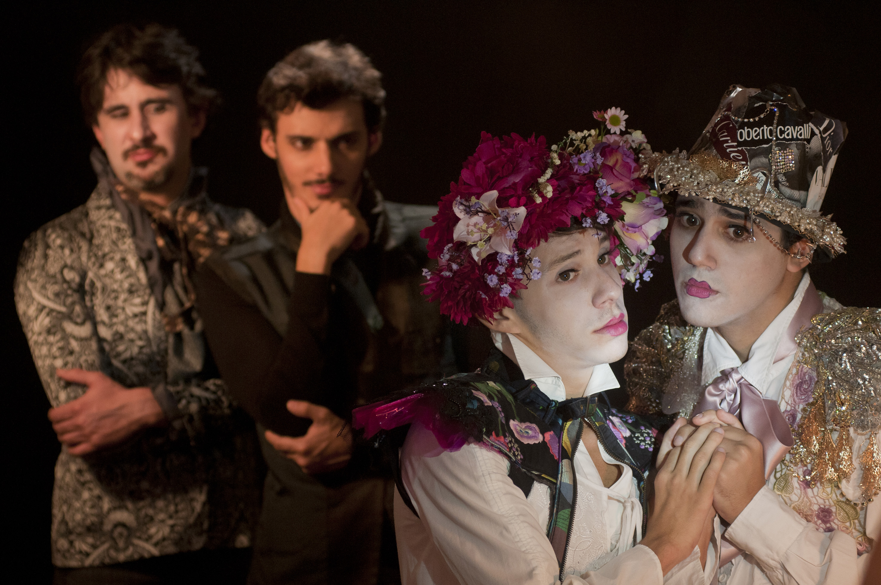 Na peça, os papéis femininos são desempenhados por atores homens do coletivo e mais três atores da Companhia Atores de Laura. Essa concepção de androginia, que a direção incorporou ao trabalho, ganha forma e cor nos figurinos, nos quais elementos masculinos e femininos coexistem e se misturam. A música é tocada ao vivo pelos próprios atores, que também são músicos, em sua maioria.