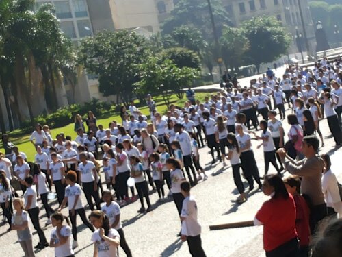 Em contagem regressiva para o maior evento gospel, hoje (01) aconteceu um Flash Mob pro Marcha para Jesus. Centenas de jovens com a camiseta do evento da Marcha para Jesus se reuniram no Vale do Anhangabaú, fazendo suas coreografias.